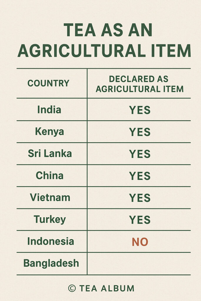 Let’s take a look at why the tea sector should be officially acknowledged as part of the agricultural sector — and what’s at stake if it’s not. From the list in the below it is quite evident that among the top 10 tea producing nation only Bangladesh and Indonesia do not have agricultural status. Which itself clarify the gravity of the issue.