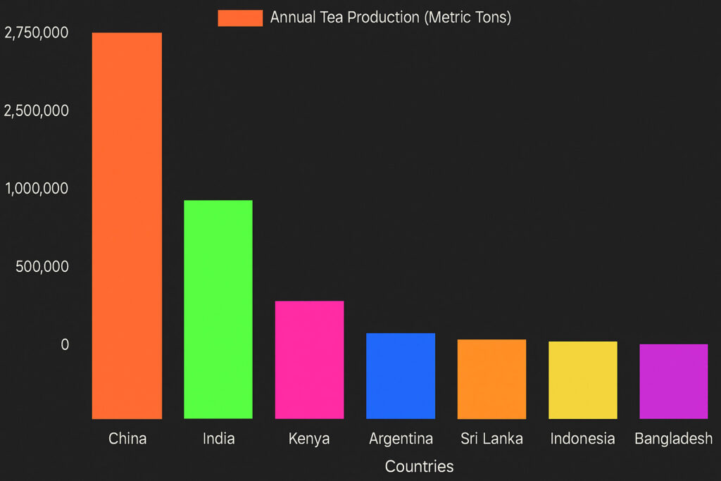 2India1.42 millionAssam, Darjeeling, Nilgiri (Black tea)Yunnan, Zhejiang, Fujian