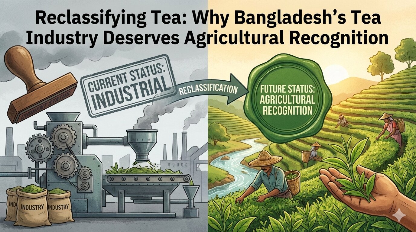 Tea is not just limited to a beverage—it’s connected with people’s emotions, a livelihood, and on top of that leaf that connects Bangladesh’s hills to the global market industry. The rotary green mountain of Sylhet, Moulvibazar, Habiganj, and Chattogram don’t just limit to producing tea — they nurture living, traditions, and a booming rural economy. Yet despite all of this, tea in Bangladesh is not officially categorized as an agricultural crop. This technicality may seem less significant, but it has notable implications, particularly when the matter comes to loans, subsidies, and policy support.